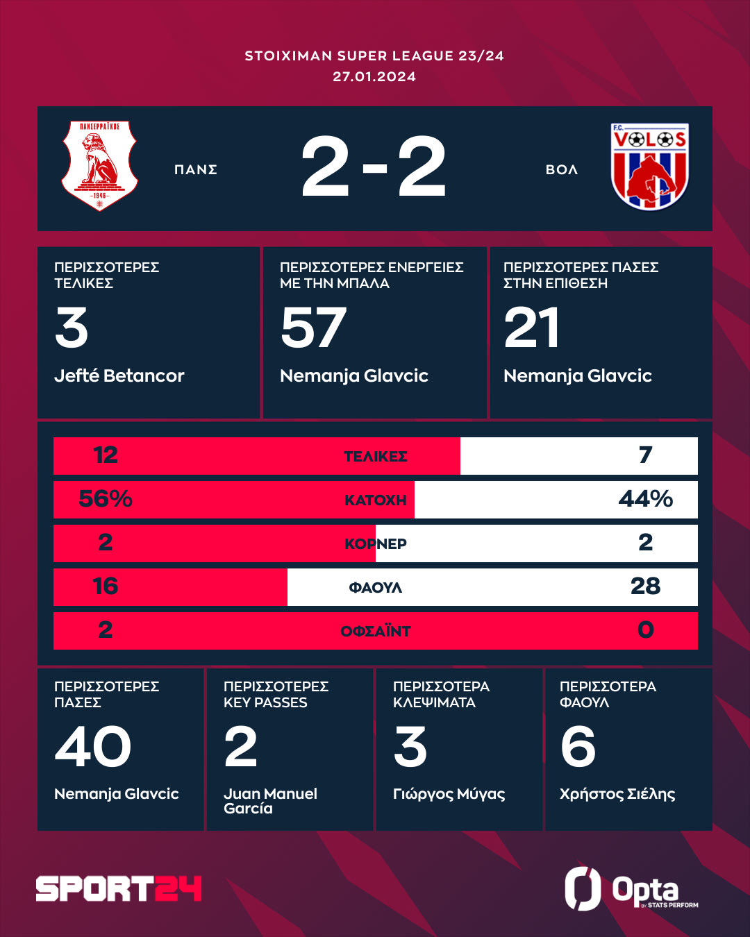 Ο Πανσερραϊκός με αυτό τον βαθμό έφτασε τους 22 στη Stoiximan Super League, ενώ ο Βόλος έβαλε τέλος στο σερί πέντε ηττών και έφτασε τους 15 βαθμούς.