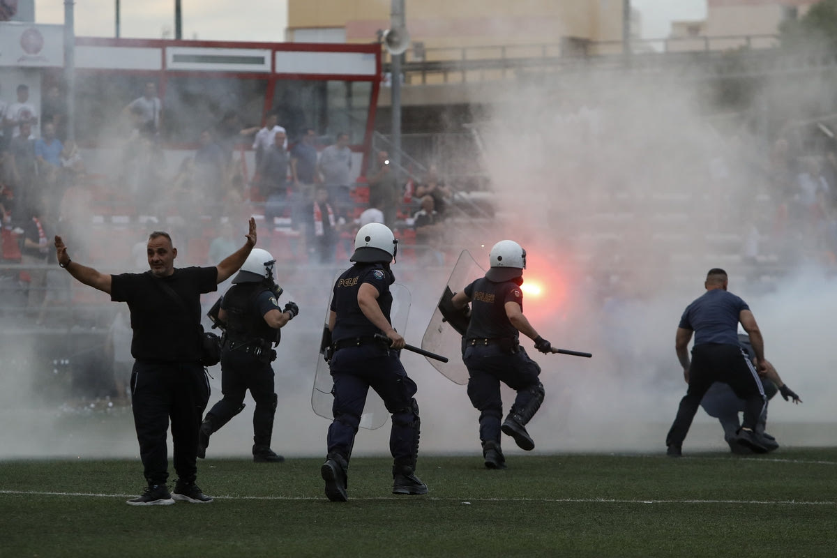 Τα ΜΑΤ στον αγωνιστικό χώρο μετά το ΠΑΟ Ρουφ - Μακεδονικός