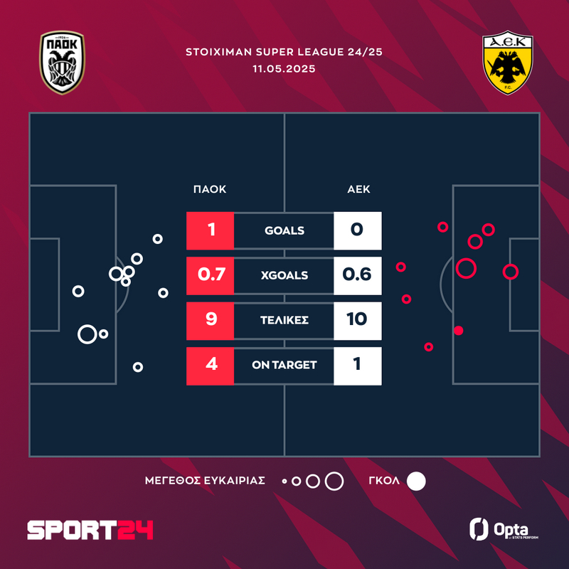 ΠΑΟΚ – ΑΕΚ 1-0: Τρίτοι οι “ασπρόμαυροι” με γκολάρα Μιχαηλίδη, χωρίς βαθμό στα playoffs η Ένωση