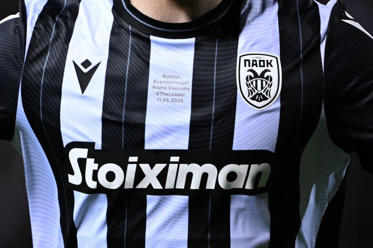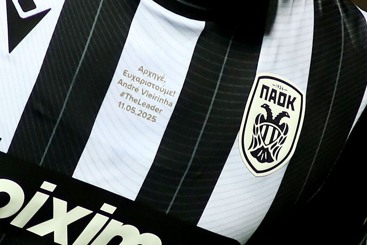 Το μήνυμα που φέρουν οι φανέλες του ΠΑΟΚ στο ντέρμπι με την ΑΕΚ προς τιμήν του Αντρέ Βιεϊρίνι, ο οποίος αποφάσισε να κρεμάσει τα παπούτσια του.