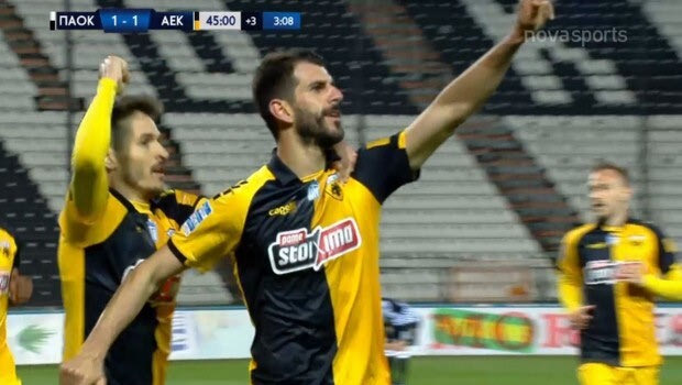 Στο τρίτο λεπτό των καθυστερήσεων στο πρώτο ημίχρονο η ΑΕΚ ισοφάρισε με τον Ολιβέιρα ο οποίος δέχτηκε μια υπέροχη κάθετη πάσα από τον Μάνταλο. (VIDEO)