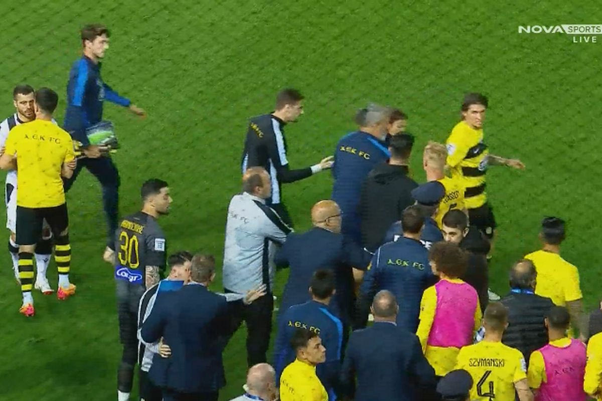 Την ώρα που ορισμένοι παίκτες του ΠΑΟΚ πανηγύριζαν τη νίκη, ο Ματίας Αλμέιδα εμφανίστηκε να τρέχει προς το σημείο όπου βρίσκονταν συγκεντρωμένοι αρκετοί άνθρωποι των δύο πάγκων και της διοργάνωσης του παιχνιδιού.
