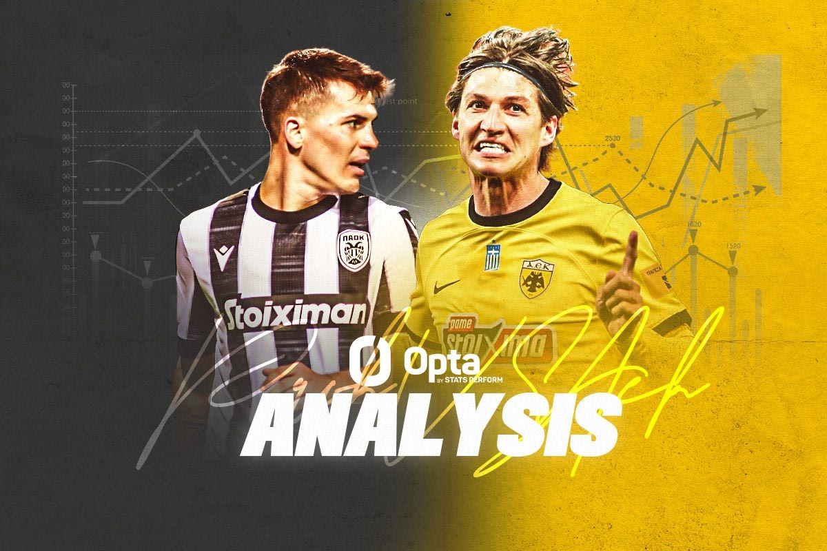 Στο infographic της Opta/Stats Perform μπορείτε να δείτε τη σύγκριση των δύο παικτών. Με γαλάζια νούμερα είναι οι επιδόσεις τους που υπερτερούν ανά κατηγορία. Οι αριθμοί παρουσιάζουν ένα απολύτως ισορροπημένο δίδυμο, αφού αμφότεροι προπορεύονται σε πέντε κατηγορίες έναντι του αντιπάλου τους.