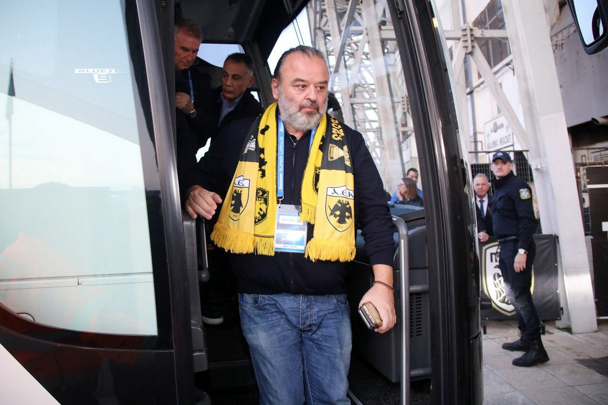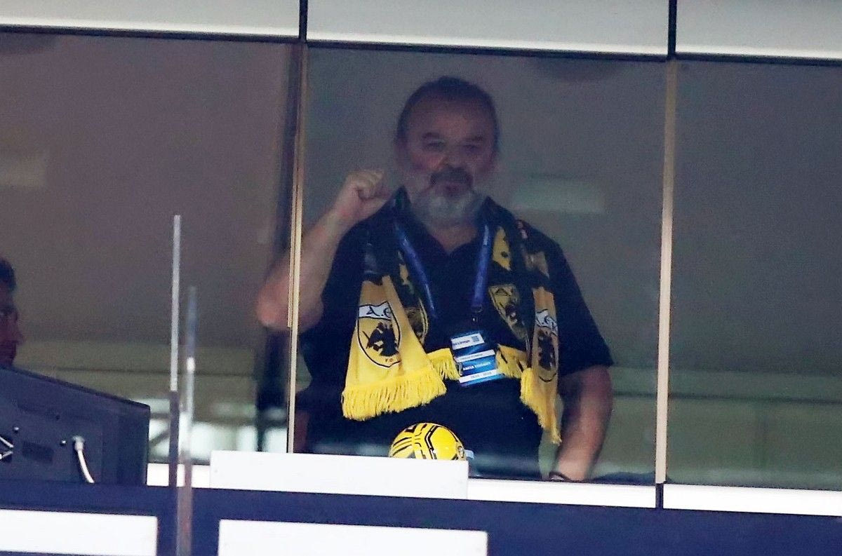 Ο ιδιοκτήτης της κιτρινόμαυρης ΠΑΕ ηγήθηκε της κιτρινόμαυρης αποστολής και πήρε θέση στις σουίτες της Τούμπας, φορώντας το κιτρινόμαυρο κασκόλ.