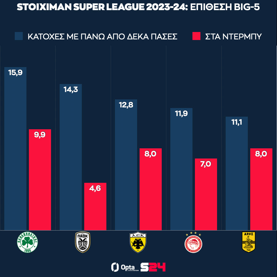 Οι κατοχές με 10+ πάσες των ομάδων του Big-5 στο πρωτάθλημα και στα ντέρμπι