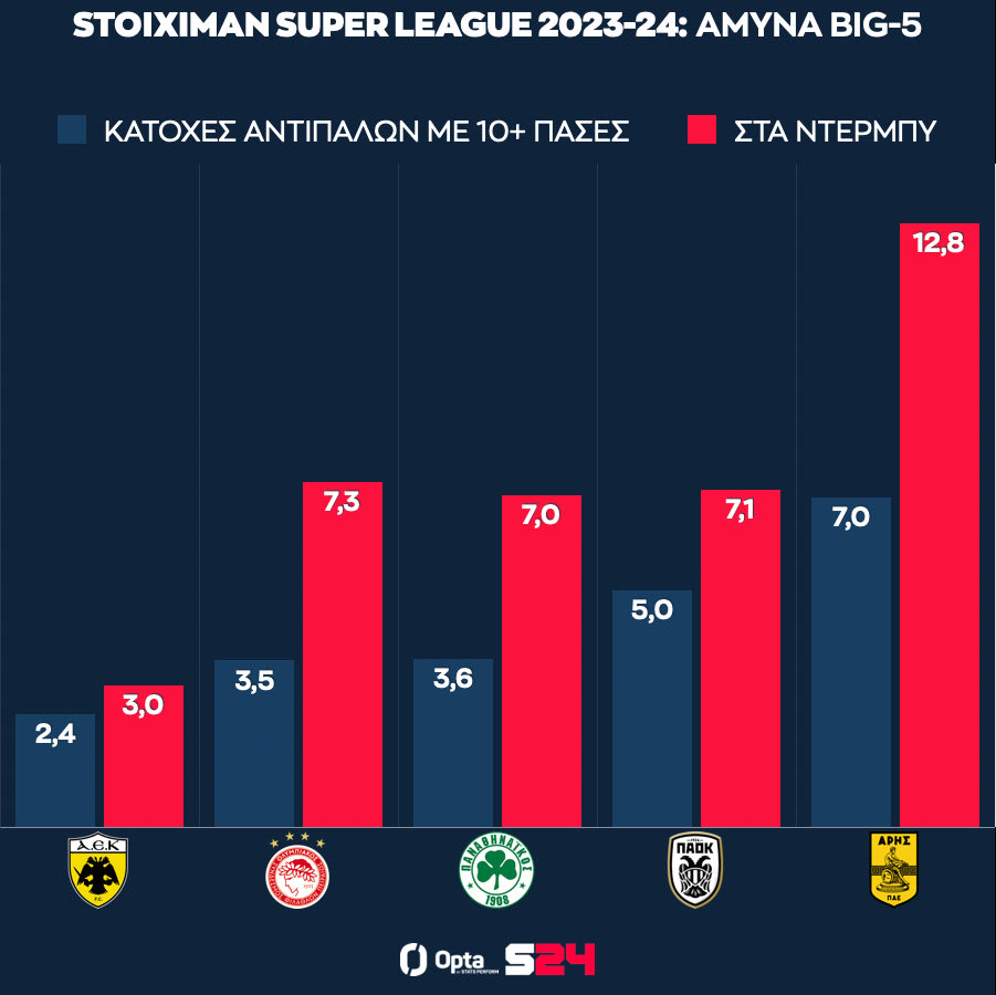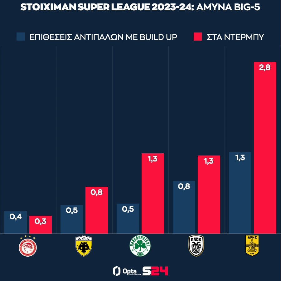 Η ΑΕΚ είναι ΟΚ, αλλά είναι ζήτημα για Παναθηναϊκό και ΠΑΟΚ το γεγονός πως στα ντέρμπι ανεβαίνουν και δέχονται 1.3 επιθέσεις με build up.