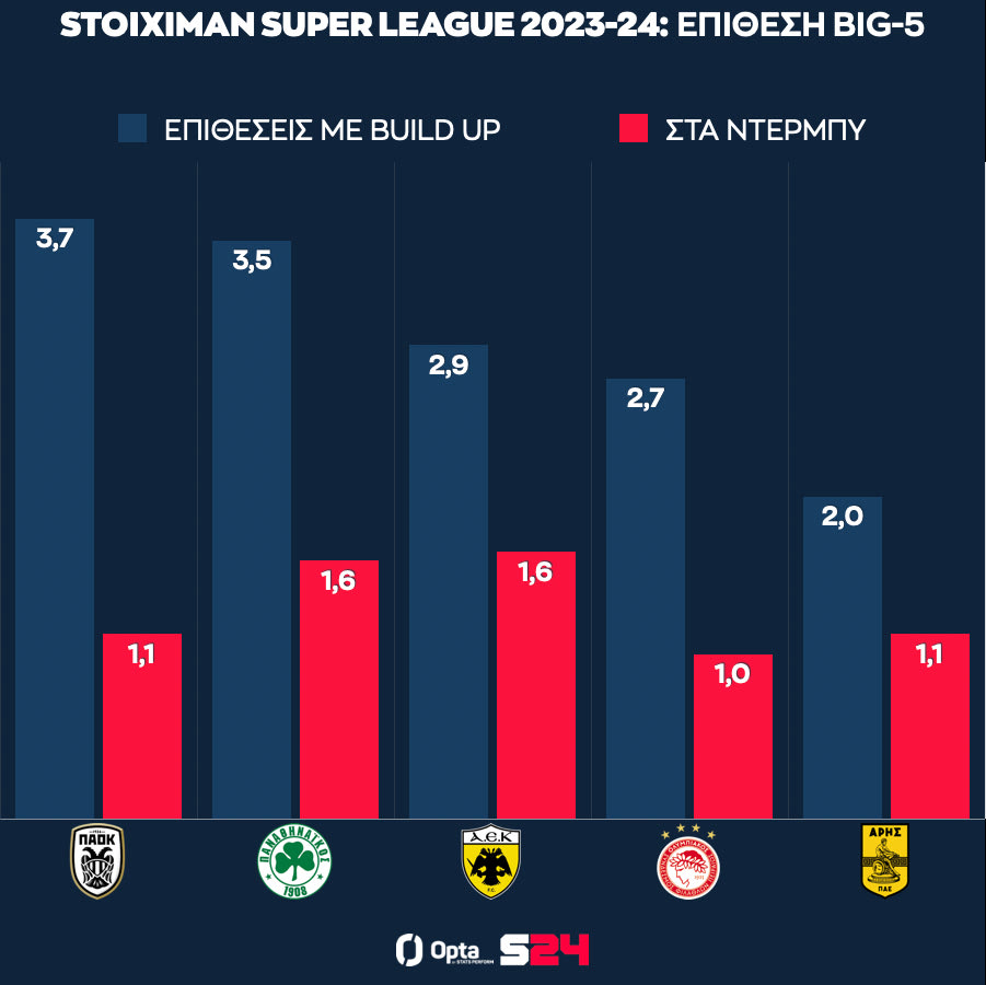 Οι επιθέσεις με build up των ομάδων του Big-5 στο πρωτάθλημα και στα ντέρμπι