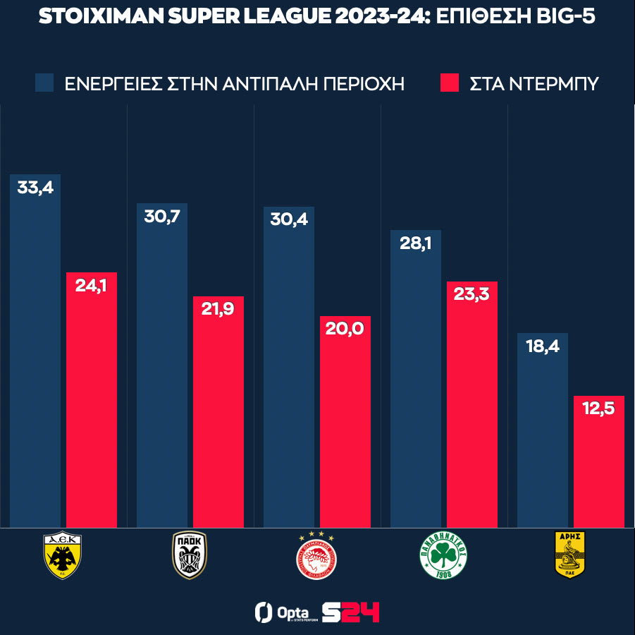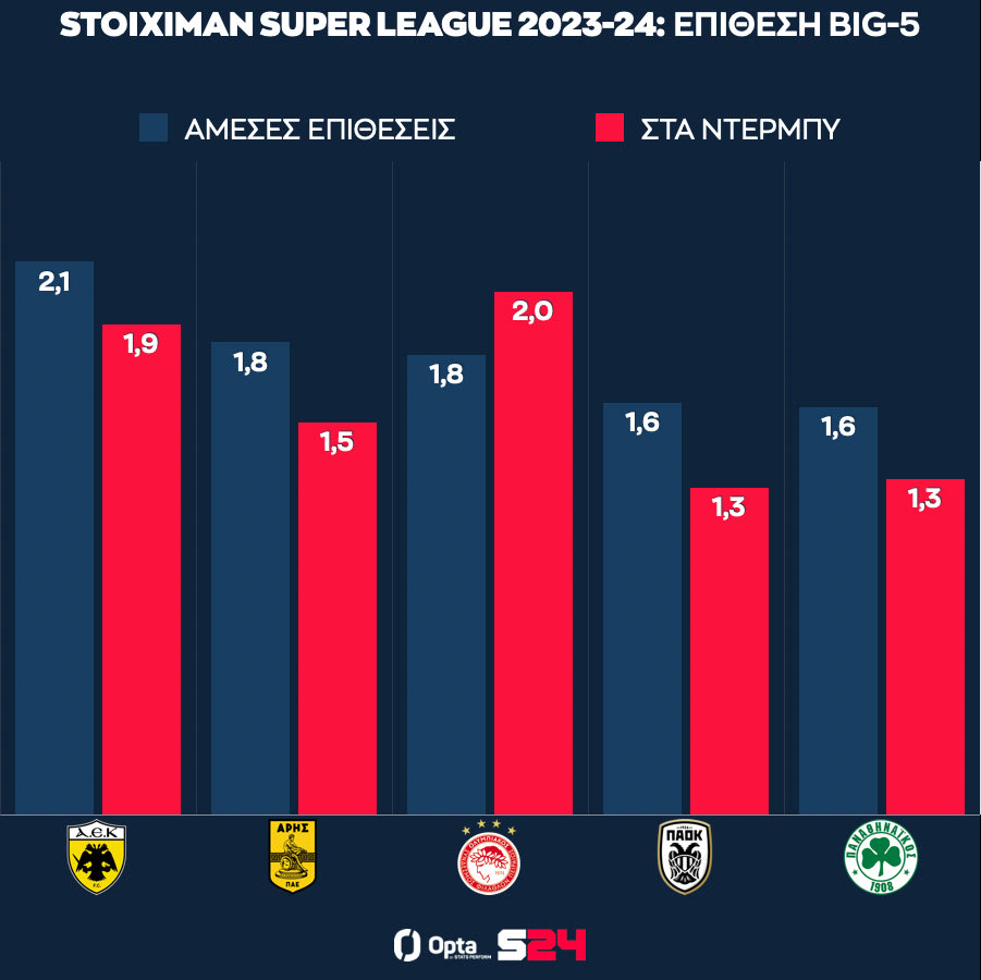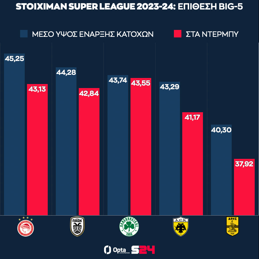 Το πόσο ψηλά στο γήπεδο παίζει το Big-5 στο πρωτάθλημα και στα ντέρμπι