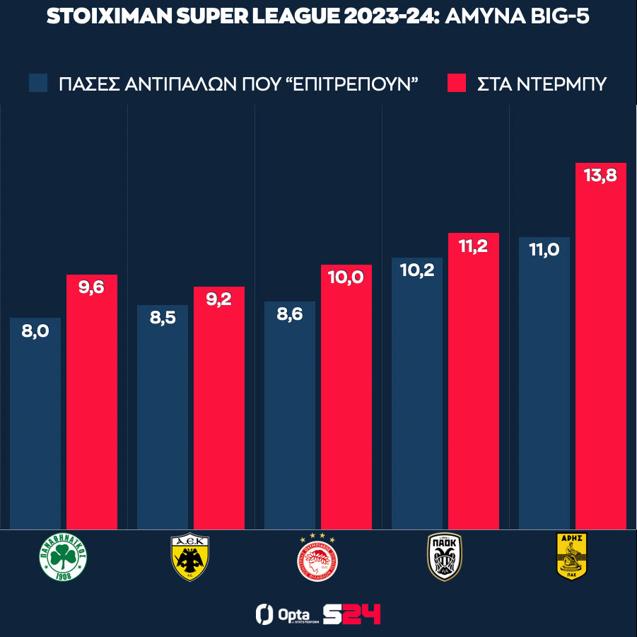 Οι κατοχές με 10+ πάσες που επιτρέπουν στον αντίπαλο οι ομάδες του Big-5 στο πρωτάθλημα και στα ντέρμπι