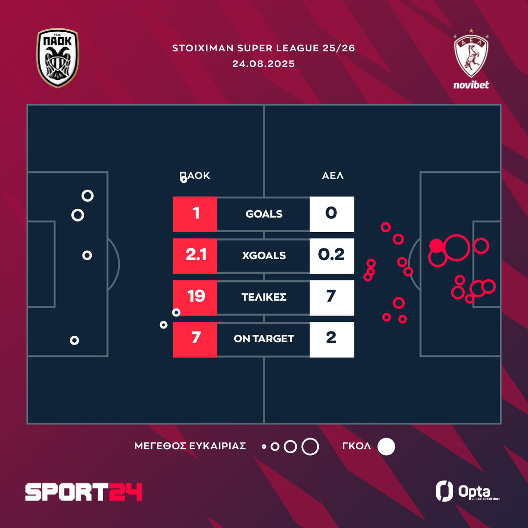 Στο 86′ ήταν η σειρά του Καμαρά να απειλήσει και του Μελίσσα να προσθέσει ακόμη μία θετική επέμβαση στο ενεργητικο του, με την φάση αυτή να είναι η τελευταία αξιόλογη στο ματς, για να έρθει το τελικό σφύριγμα του διαιτητή Φωτιά και να σφραγιστεί το 1-0 του ΠΑΟΚ που υπέγραψε την επιτυχημένη του πρεμιέρα στο πρωτάθλημα.