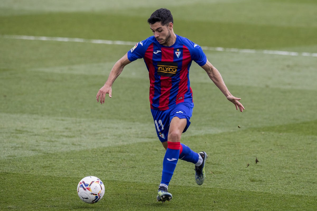 Eibar's Rafa Soares during the Spanish La Liga soccer match between Real Madrid and Eibar at the Alfredo di Stefano stadium in Madrid, Spain, Saturday, April 3, 2021. (AP Photo/Bernat Armangue) © 2022 Bernat Armangue / AP Images