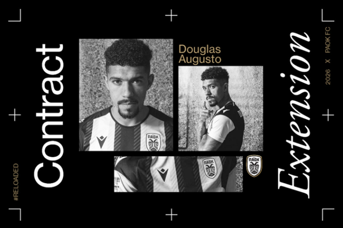 “Η ΠΑΕ ΠΑΟΚ ανακοινώνει την ανανέωση της συνεργασίας της με τον Ντόουγκλας Αουγκούστο μέχρι τις 30 Ιουνίου του 2026.