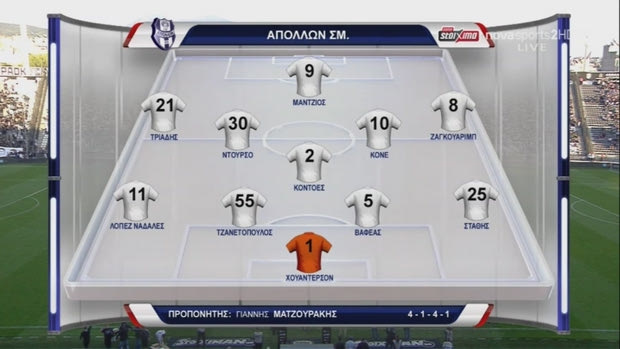 ΑΠΟΛΛΩΝ ΣΜΥΡΝΗΣ (Γιάννης Ματζουράκης): Χουάντερσον, Τζανετόουλος, Βαφέας, Κοντοές, Στάθης, Ναδάλες (68′ Σικαμπάλα), Κονέ, Μάντζιος, Μπεντινέλι (58′ Κίνο), Ντούρσο, Τριάδης (86′ Γκαρός).