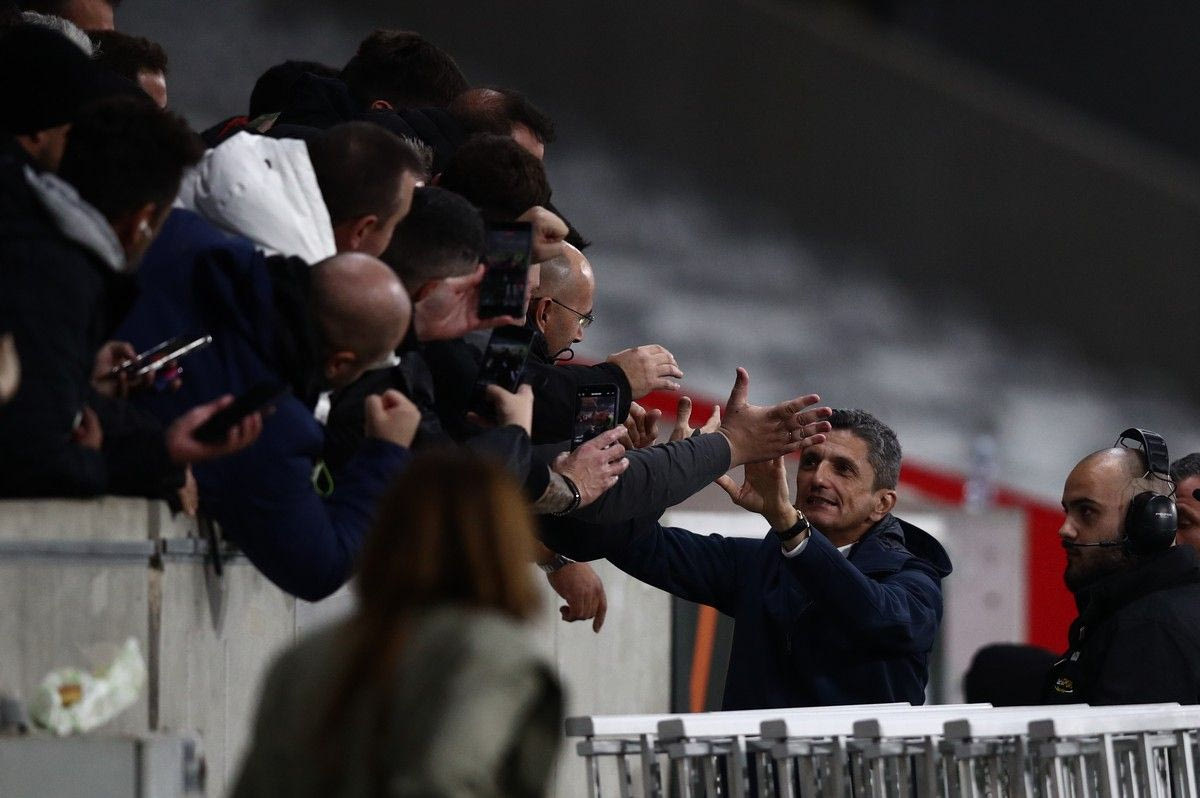 Όπως είναι λογικό, οι φίλαθλοι της ομάδας που βρέθηκαν στις εξέδρες του Πιερ Μορουά, ήταν εκστασιασμένοι με το τελικό αποτέλεσμα και φρόντισαν να το δείξουν στον προπονητή και τους παίκτες του συλλόγου.