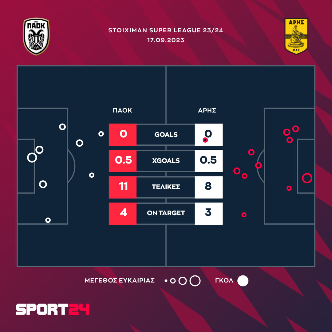 Σε ένα ματς με λίγες καλές στιγμές ΠΑΟΚ και Άρης έμειναν στο 0-0 στο γήπεδο της Τούμπας. Ο VAR ακύρωσε για οφσάιντ γκολ του Ντεσπότοφ.
