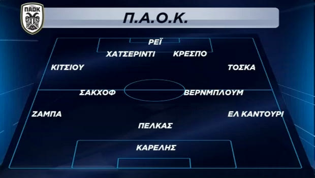 Ο Ραζβάν Λουτσέσκου έδωσε φανέλα βασικού στον Ρέι (έτσι κι αλλιώς ο Πασχαλάκης εξέτισε την ποινή μίας αγωνιστικής για τη χειρονομία τους προς τους οπαδούς του ΟΦΗ) για να υπερασπιστεί την εστία του, ο Κίτσιου (μοναδικός “επιζών” σε τέτοιου είδους ντέρμπι μετά από 1655 ημέρες) στο δεξί αμυντικό άκρο, ο Τόσκα στο αριστερό κι ενδιάμεσά τους ως κεντρικό αμυντικό δίδυμο οι Χατσερίντι και Κρέσπο. Το αντίστοιχο δίδυμο στους χαφ αποτελείτο από τους Σάχοβ και Βέρνμπλουμ, ο Ζαμπά ήταν στο δεξί “φτερό”, ο Ελ Καντουρί στο αριστερό κι ο Πέλκας σε επιτελικό ρόλο πίσω από τον προωθημένο Καρέλη.