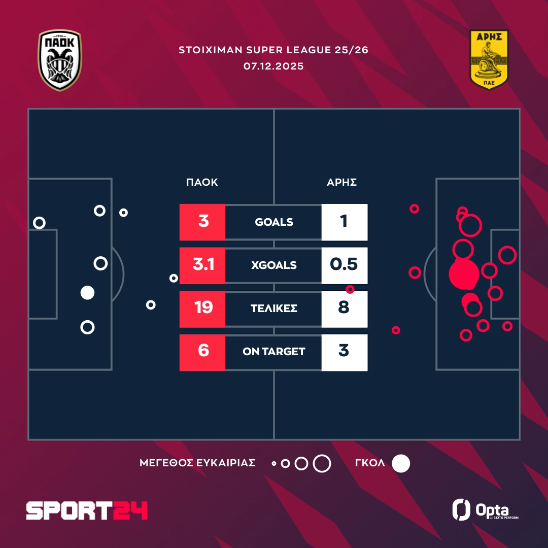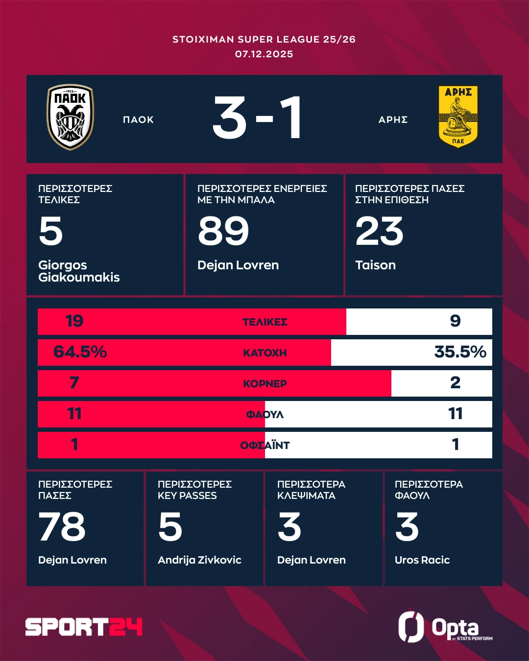 Έτσι ο ΠΑΟΚ πήρε τρίτη σερί νίκη στην Stoiximan Super League και πλησίασε ξανά σε απόσταση δύο βαθμών από τον πρωτοπόρο Ολυμπιακό. Ο Άρης αντίθετα δεν έδωσε συνέχεια στη νίκη επί της ΑΕΛ Novibet και έμεινε 8ος.