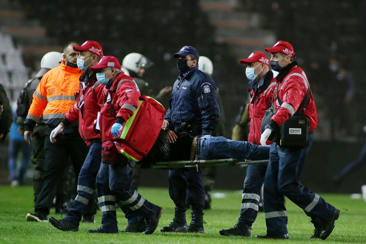 Το παιχνίδι του ΠΑΟΚ με τον Άρη διακόπηκε, καθώς οι οπαδοί του Δικεφάλου πέταξαν αντικείμενα, ενώ από τις συμπλοκές ένας άνθρωπος τραυματίστηκε και αποχώρησε με φορείο.