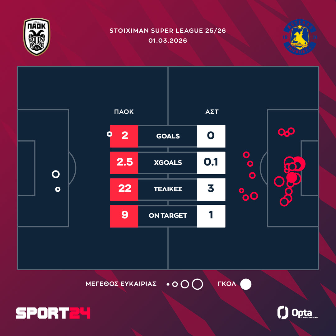 ΠΑΟΚ – Αστέρας AKTOR 2-0: Ο σοβαρός Δικέφαλος νίκησε εύκολα τον Αστέρα AKTOR και μείωσε στο -3 από την κορυφή