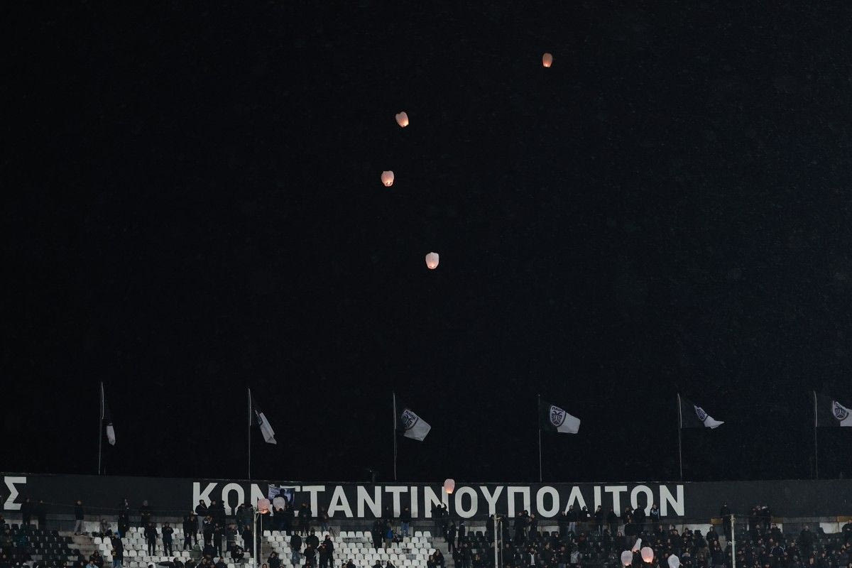 Οι φίλαθλοι του ΠΑΟΚ επέλεξαν να αποχαιρετήσουν τα θύματα των Τεμπών με έναν ιδιαίτερο τρόπο, αφήνοντας στον ουρανό της Τούμπας 57 φαναράκια.