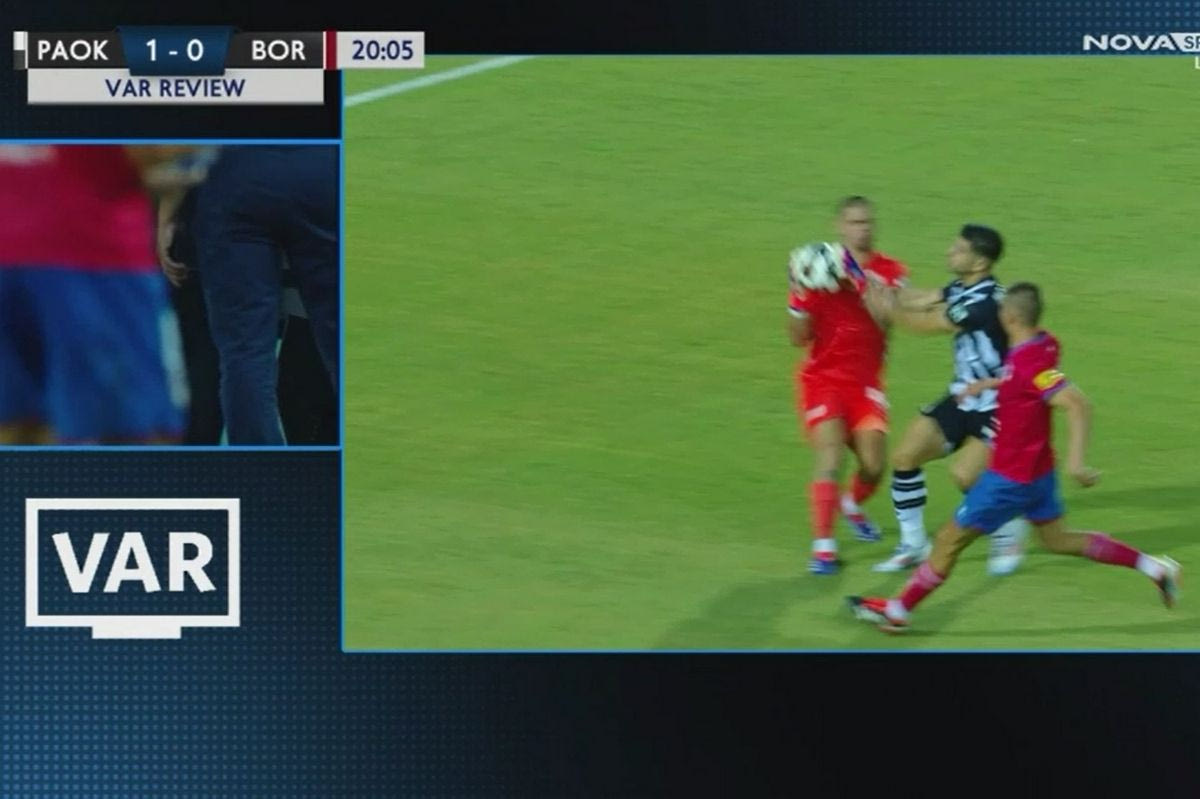 ΠΑΟΚ – Μπόρατς: Ο Κουλιεράκης βρήκε με το χέρι τη μπάλα μέσα από την αγκαλιά του Κοτάρσκι και υπέπεσε σε πέναλτι για την ισοφάριση των Βόσνιων