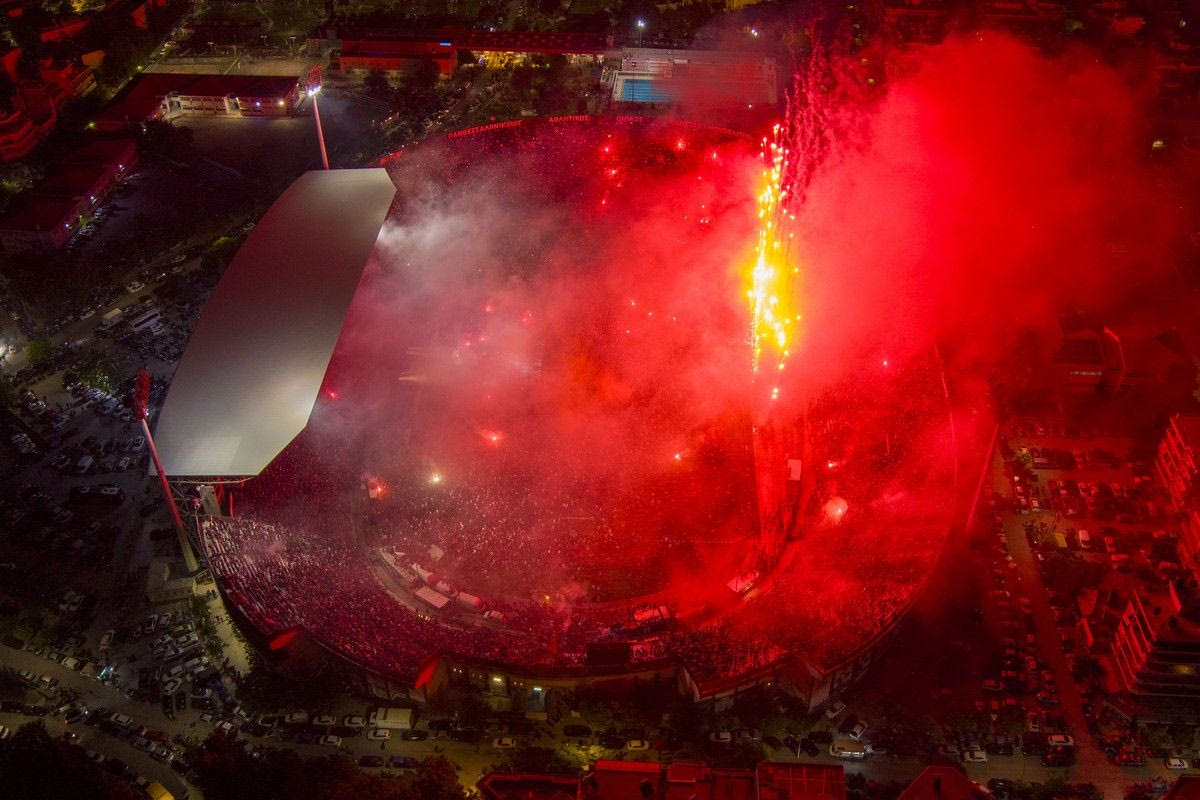 Στη φαντασμαγορική γιορτή που έχει στηθεί έγινε η νύχτα μέρα όταν φίλαθλοι του ΠΑΟΚ άναψαν ταυτόχρονα χιλιάδες καπνογόνα σε ένα αν μη τι άλλο εντυπωσιακό σκηνικό.