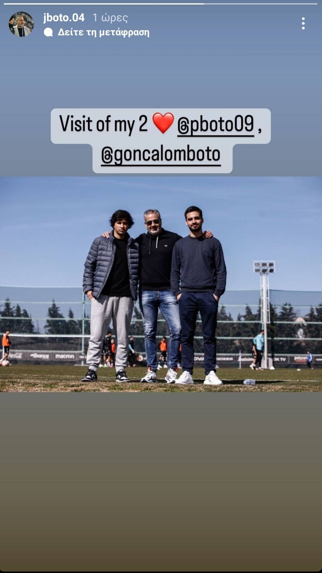Στη σημερινή προπόνηση του Δικεφάλου βρέθηκαν και οι δυο γιοι του Ζοζέ Μπότο που ταξίδεψαν στη Θεσσαλονίκη για να τον επισκεφτούν.