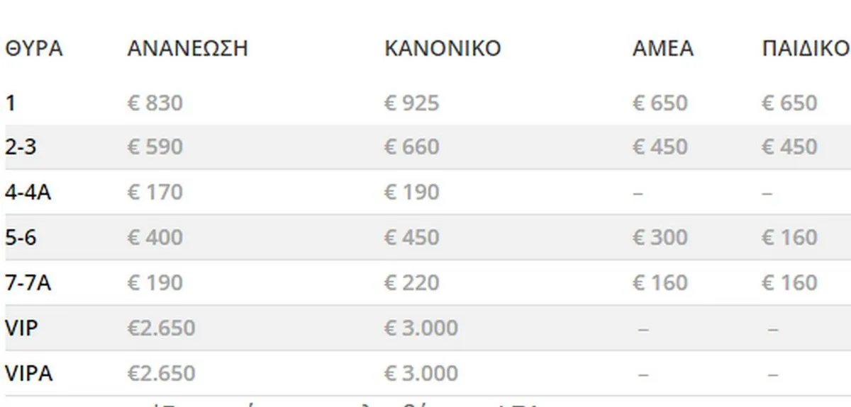 Ανανέωση: Κάθε κάτοχος εισιτηρίου διαρκείας της σεζόν 2023-24 έχει δικαίωμα να ανανεώσει τη θέση του ή να αλλάξει θέση/θύρα με προνομιακή τιμή ως τις 08.07.