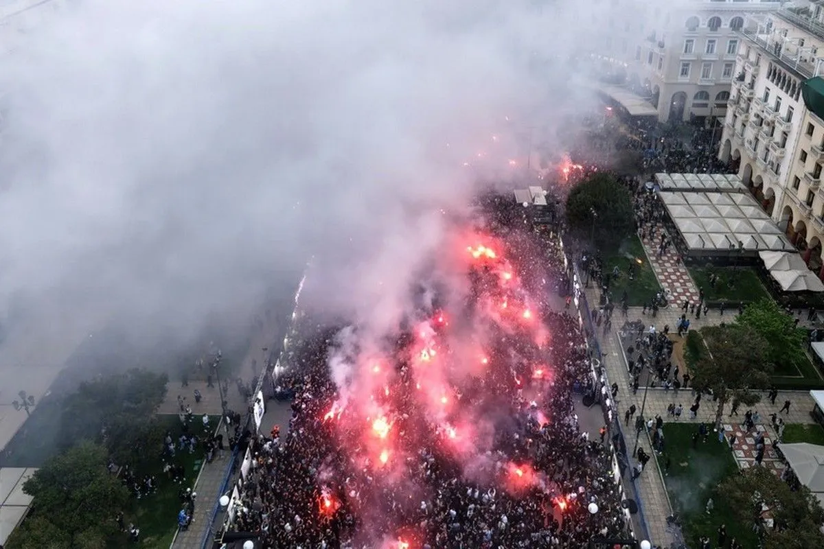 Η Πλατεία Αριστοτέλους πήρε “φωτιά”, αφού οπαδοί του ΠΑΟΚ δημιούργησαν ένα θεαματικό pyro show για τα 100 χρόνια του Δικεφάλου.