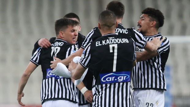 Οι παίκτες του ΠΑΟΚ πανηγυρίζουν το γκολ του Τόμας Μουργκ κόντρα στην ΑΕΚ Eurokinissi Sports