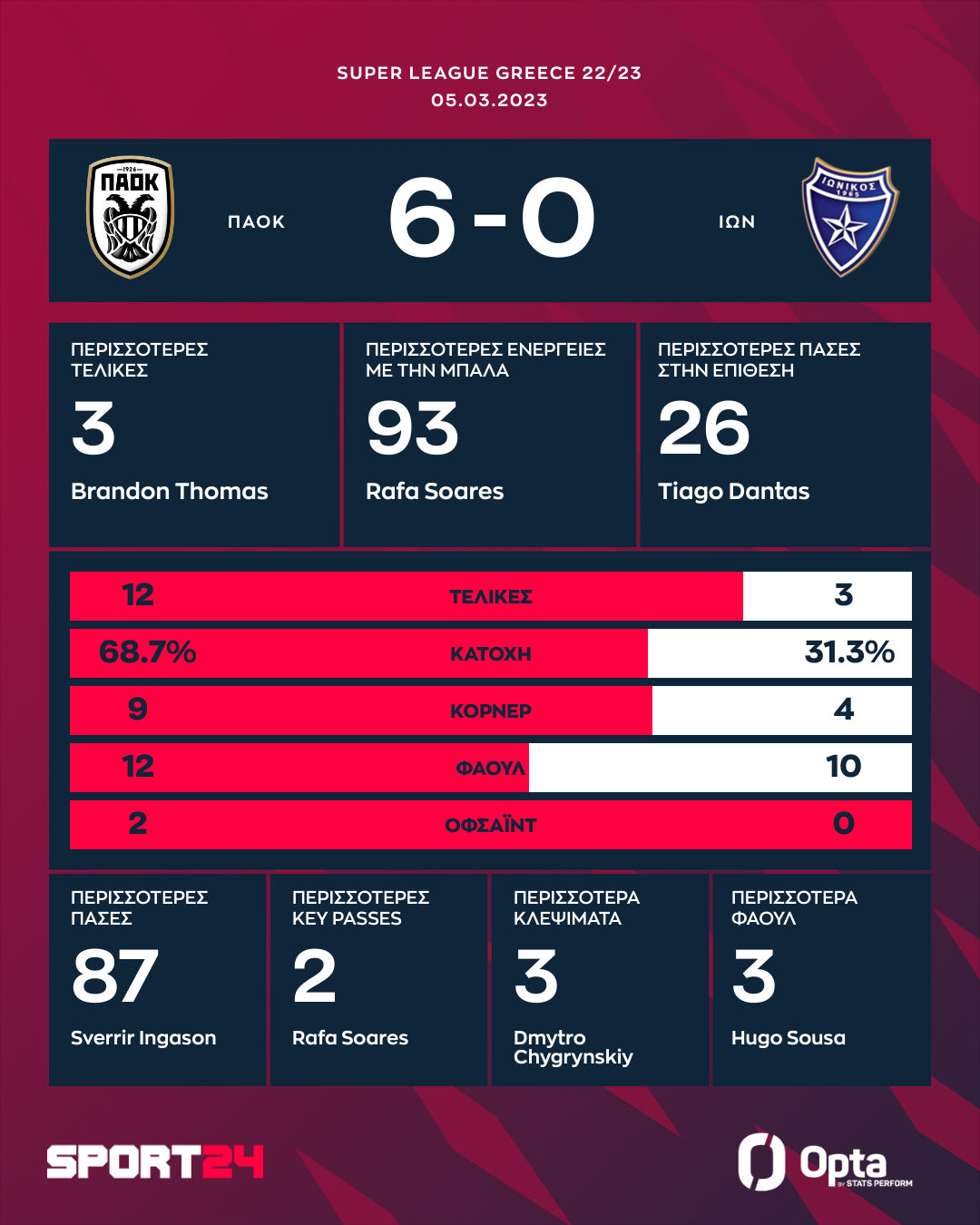 ΠΑΟΚ – Ιωνικός 6-0: Επιβλητικός ο δικέφαλος με εξάρα και ιστορικό γκολ του Τζίμα που έσπασε το ρεκόρ του Κούδα