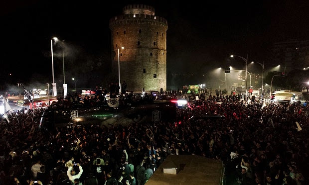 Το “μελανόλευκο” πάρτι άρχισε από την Αθήνα και το αεροδρόμιο “Ελ. Βενιζέλος” . Κορυφώθηκε πάντως τα ξημερώματα της Κυριακής (12/5), όταν η αποστολή του ΠΑΟΚ έφτασε στην Θεσσαλονίκη, όπου ήταν μαζεμένοι χιλιάδες οπαδοί του “δικέφαλου”.