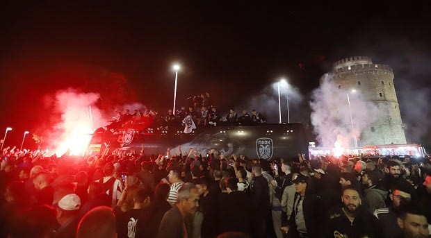 Δείτε πώς υποδέχτηκαν τους θριαμβευτές του ΠΑΟΚ οι οπαδοί του στην Θεσσαλονίκη: