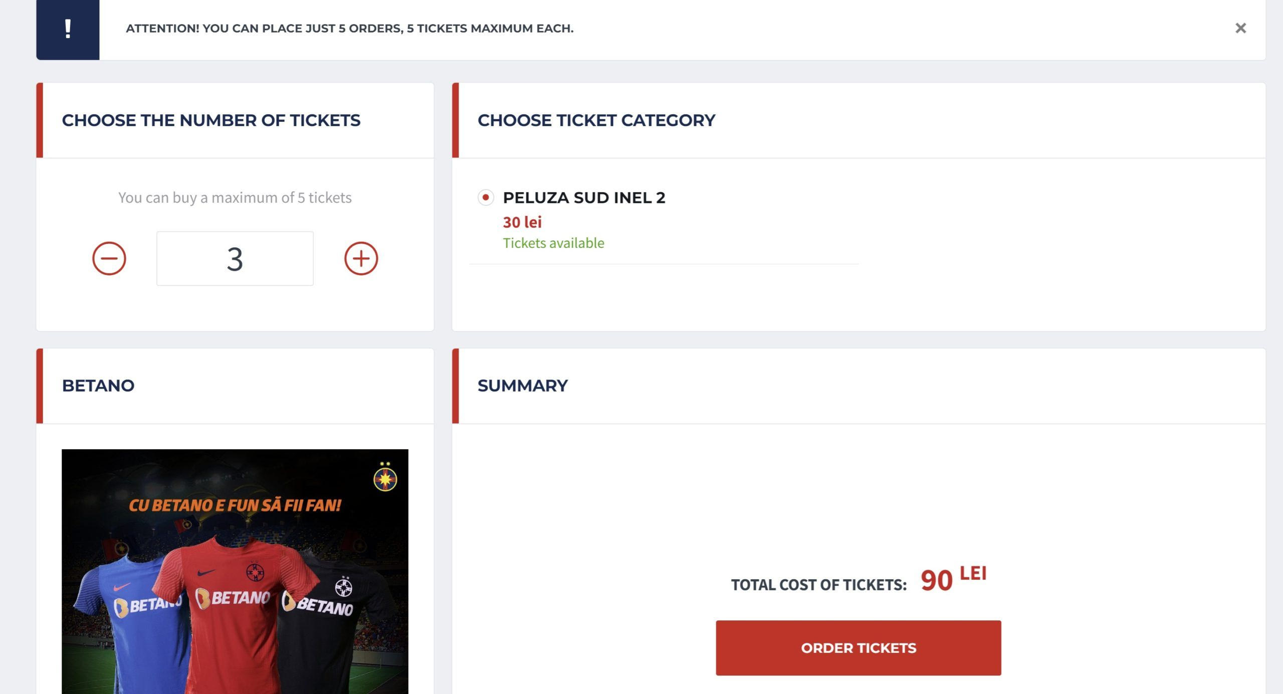 Η αγορά των εισιτήριων γίνεται αποκλειστικά από την επίσημη ιστοσελίδα της FCSB στο παρακάτω link.