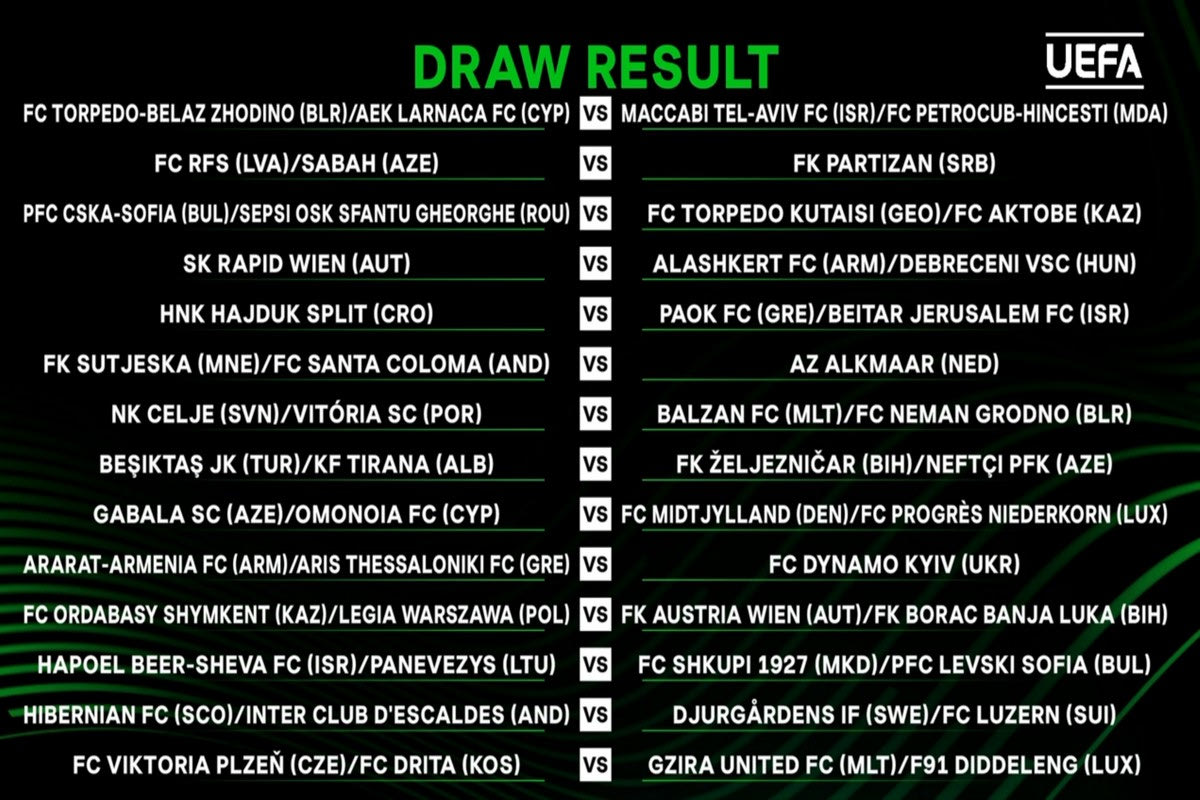 • Χάιντουκ (Κρεοατία) – ΠΑΟΚ (Ελλάδα) / Μπεϊτάρ (Ισραήλ)
