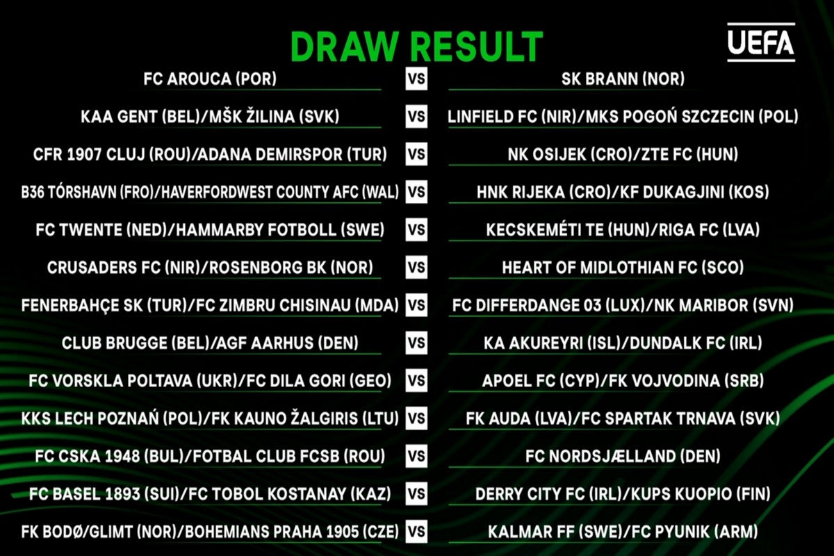 • Φενέρμπαχτσε (Τουρκία) / Ζίμπρου (Μολδαβία) – Ντιφερντάνζ (Λουξεμβούργο) / Μάριμπορ (Σλοβενία)
