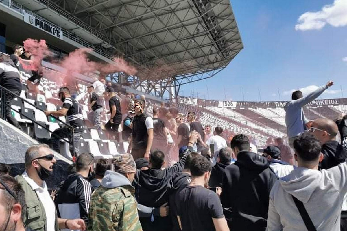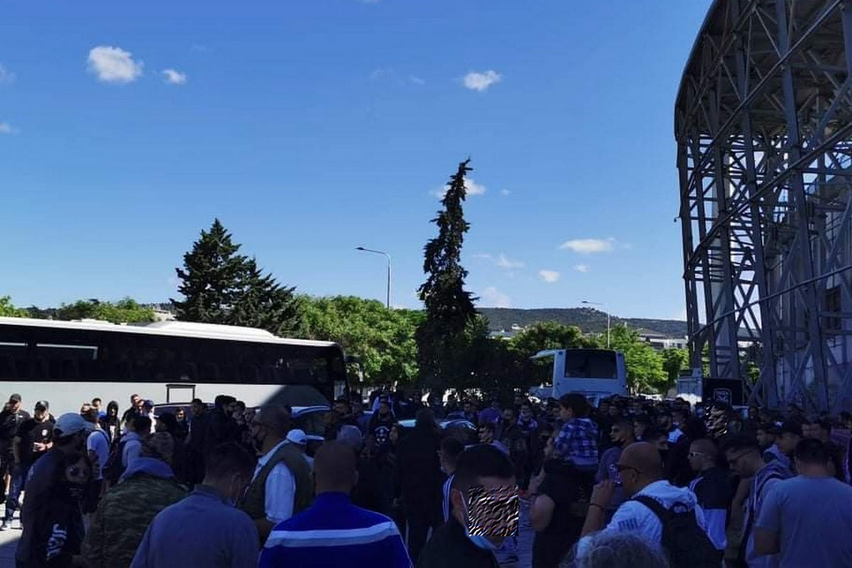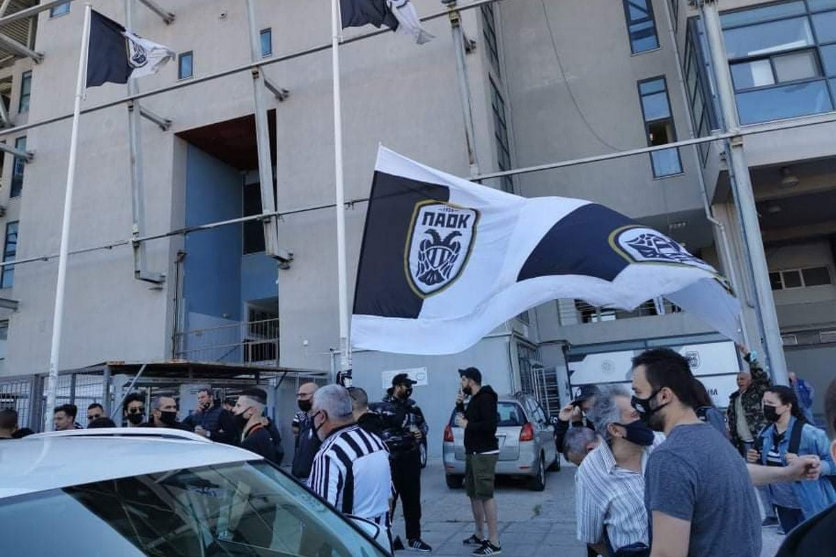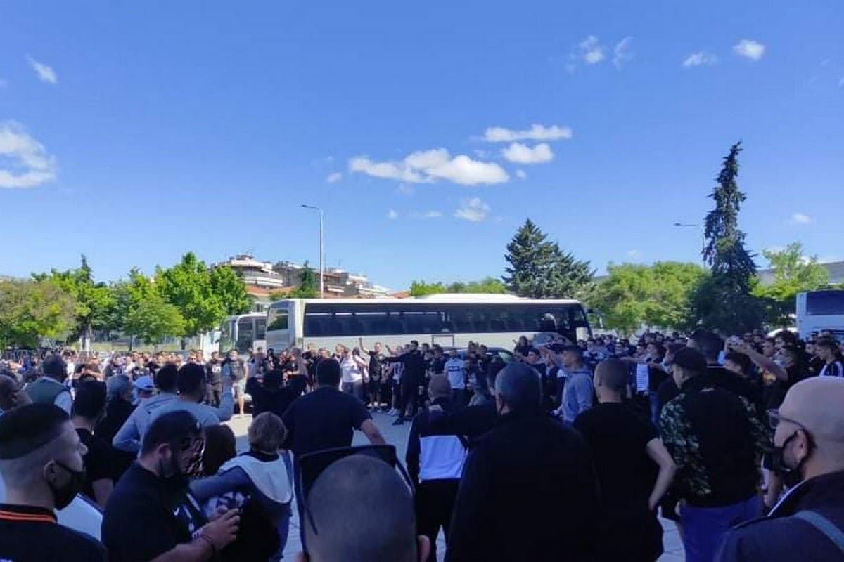 Οπαδοί του ΠΑΟΚ βρέθηκαν έξω από το γήπεδο της Τούμπας για να ντοπάρουν ψυχολογικά τους παίκτες πριν τον τελικό Κυπέλλου με τον Ολυμπιακό.