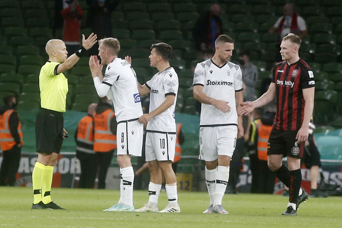 Οι παίκτες του ΠΑΟΚ διαμαρτύρονται στον διαιτητή της αναμέτρησης με την Μποέμιανς | 3 Αυγούστου 2021