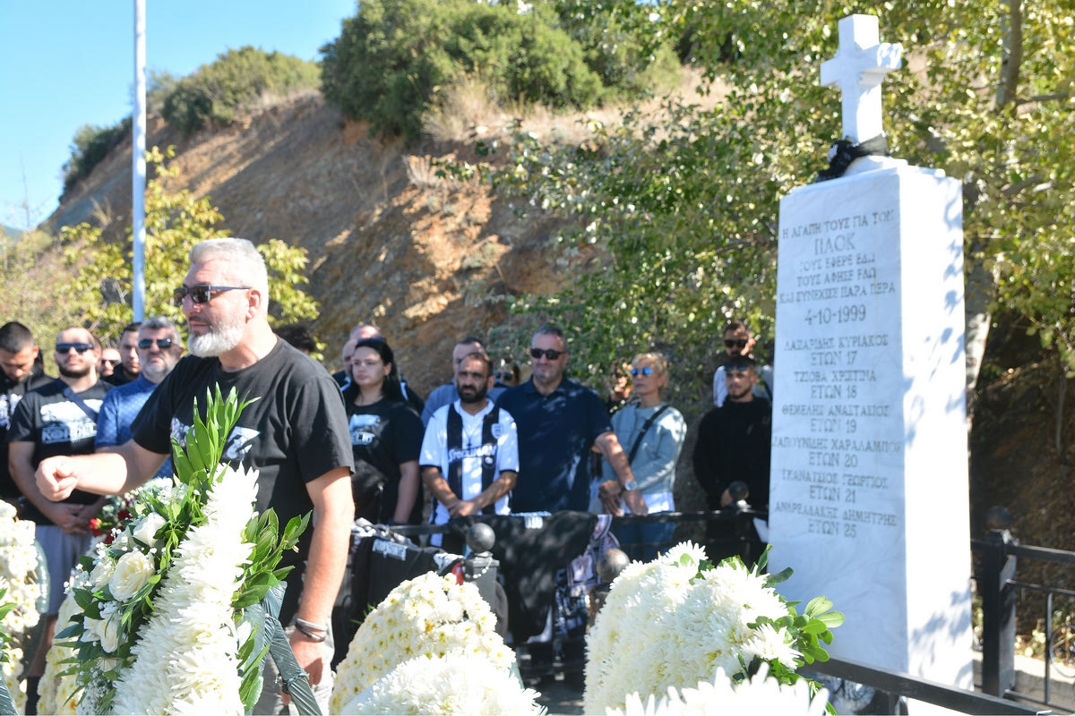 Μέσα σε κλίμα έντονης συγκίνησης πραγματοποιήθηκε το πρωί της Κυριακής (2/10) το ετήσιο μνημόσυνο στα Τέμπη για τους 6 αδικοχαμένους οπαδούς του ΠΑΟΚ.