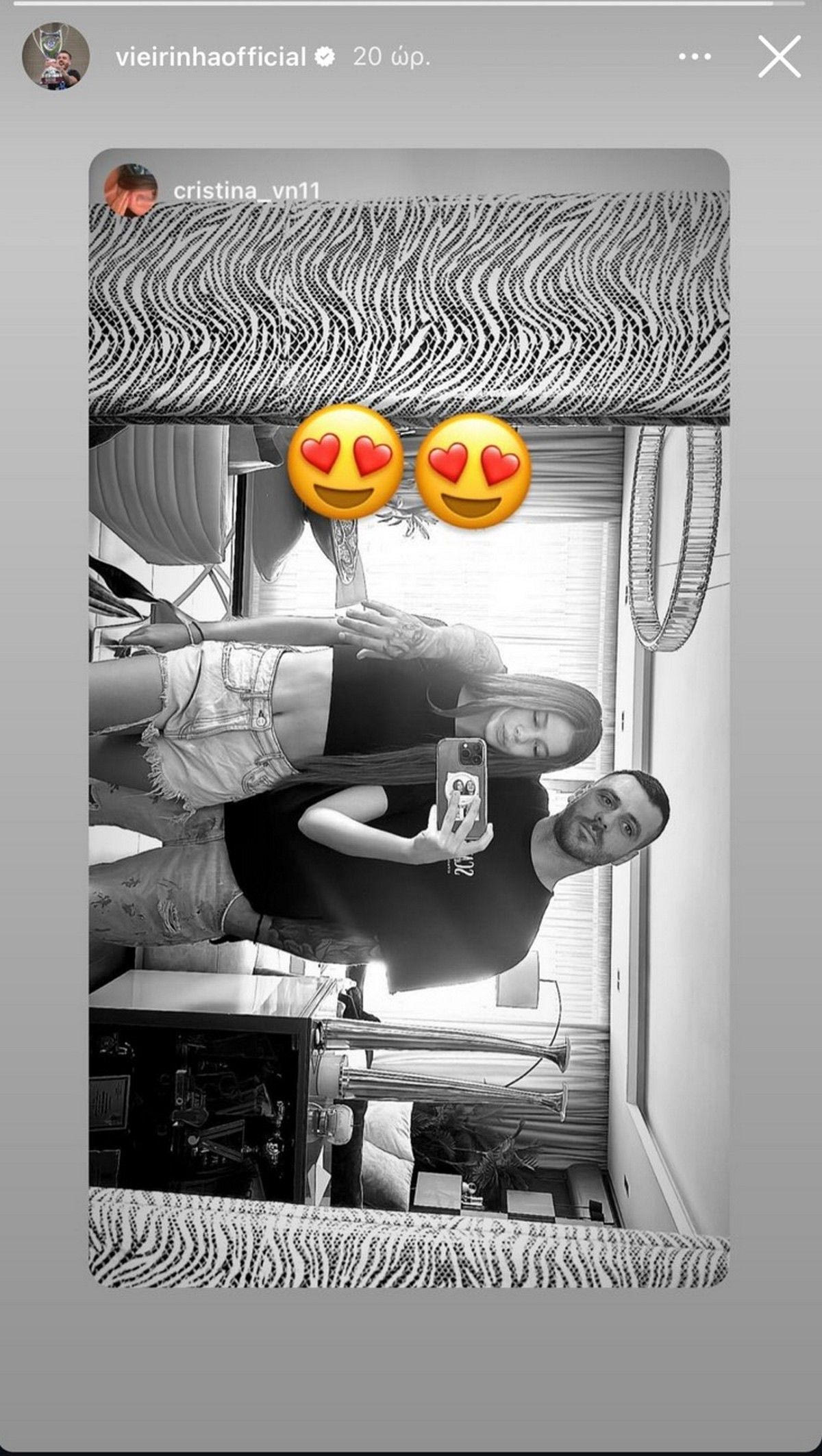 Ο 38χρονος παίκτης του Δικέφαλου ανήρτησε την σέλφι τους σε στόρι στο Instagram, ενώ προσέθεσε και δύο ερωτευμένες φατσούλες.