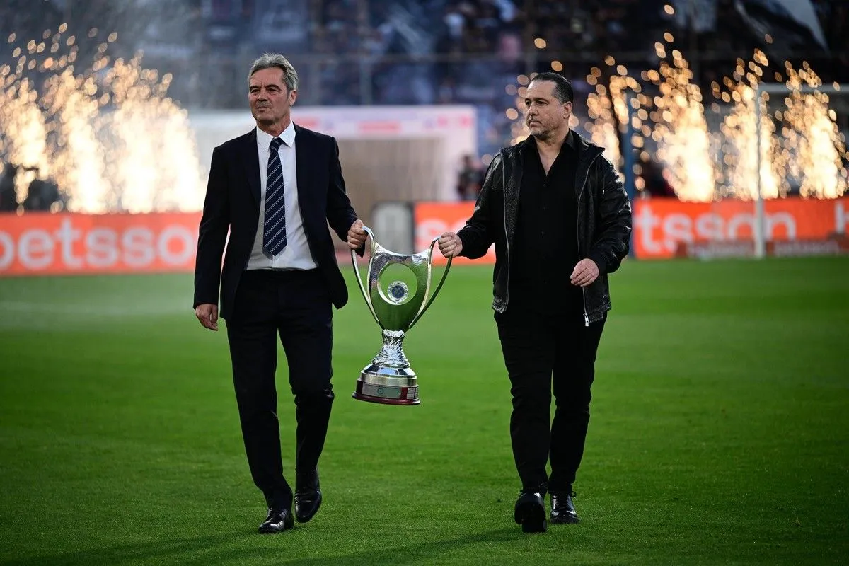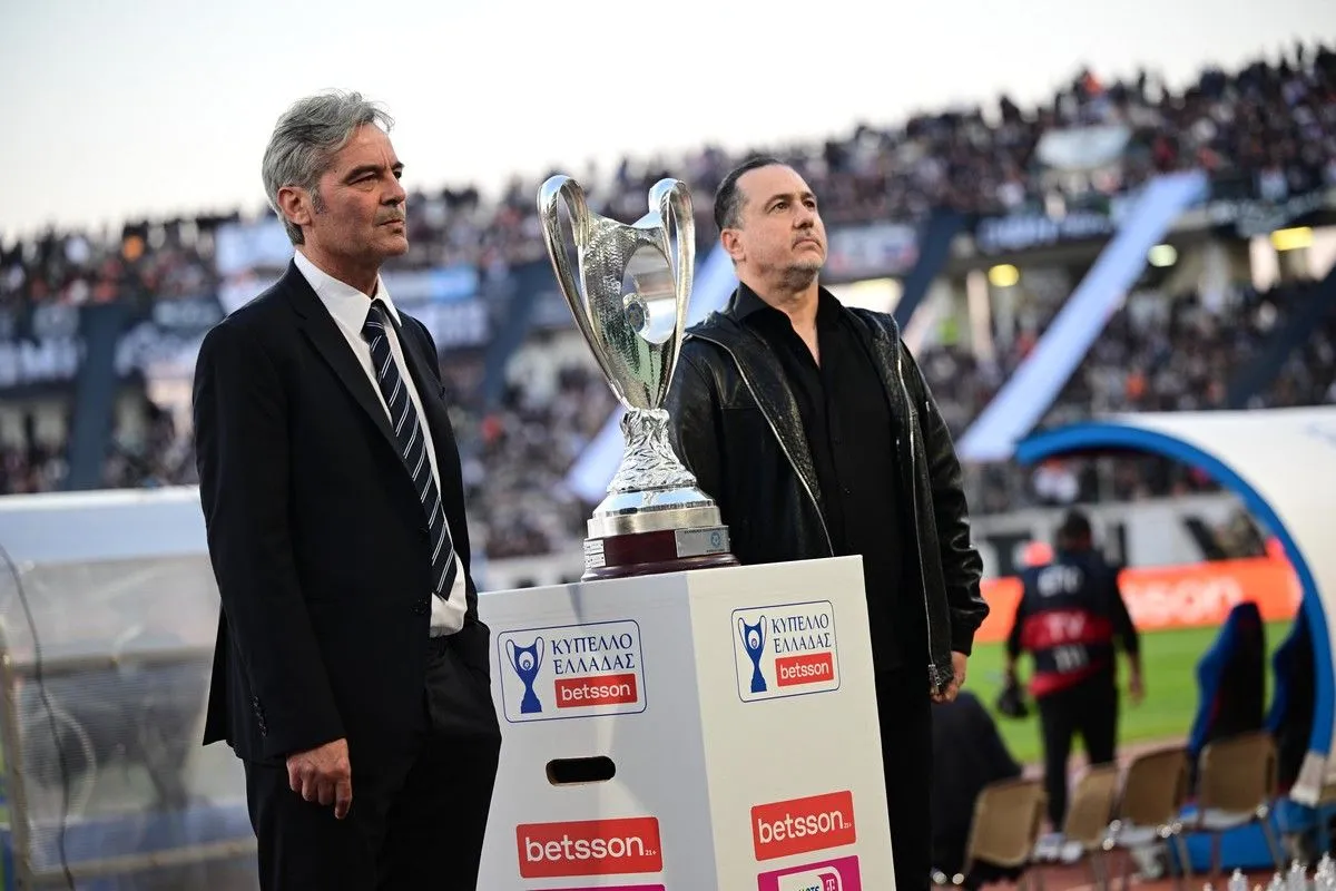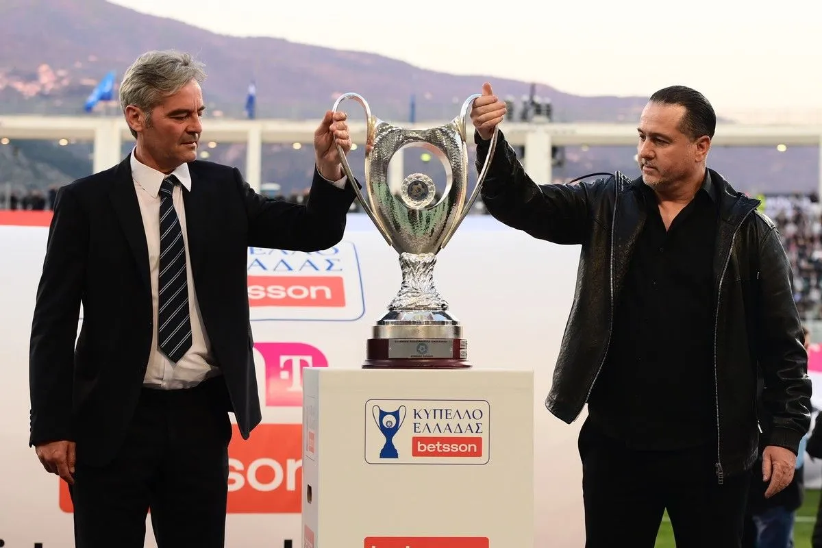 Ζήσης Βρύζας και Νίκος Μαχλάς έφεραν από κοινού το τρόπαιο του Κυπέλλου Ελλάδας Betsson στο κέντρο του Πανθεσσαλικού.