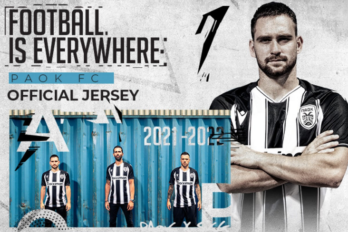 Την Τρίτη 27 Ιουλίου, η ΠΑΕ ΠΑΟΚ παρουσίασε τη νέα φανέλα της για το 2021/22, με την καμπάνια να έχει για τίτλο το “football is everywhere”. Η πρώτη εμφάνιση είναι ριγέ, η δεύτερη είναι μαύρη, ενώ η τρίτη είναι πορτοκαλί.