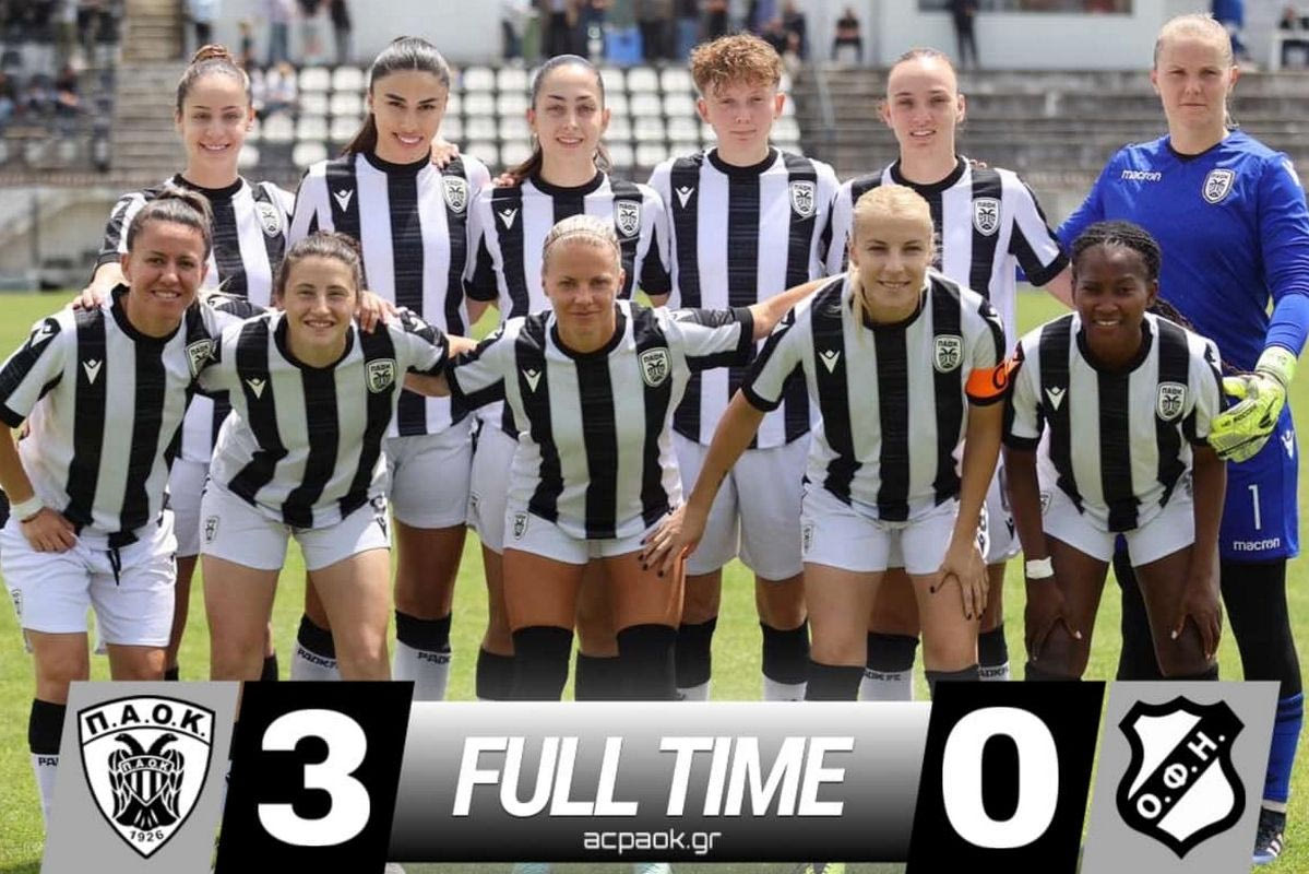 Η ομάδα γυναικών του ΠΑΟΚ επικράτησε 3-0 του ΟΦΗ και εξασφάλισε το πρωτάθλημα για 19η φορά στην ιστορία της.