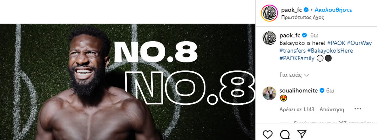 ΠΑΟΚ: Οι καρδούλες του Μεϊτέ στην ανάρτηση του Δικεφάλου για την ανακοίνωση της απόκτησης του Μπακαγιόκο