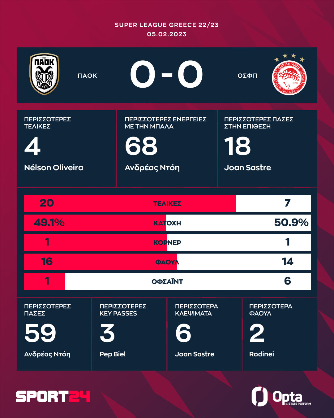 Δεν είχε νικητή το ντέρμπι της 21ης αγωνιστική της Stoiximan Super League, με την αναμέτρηση ανάμεσα στον ΠΑΟΚ και τον Ολυμπιακό να λήγει ισόπαλο 0-0. Καταπληκτική εμφάνιση από τον Πασχαλάκη.