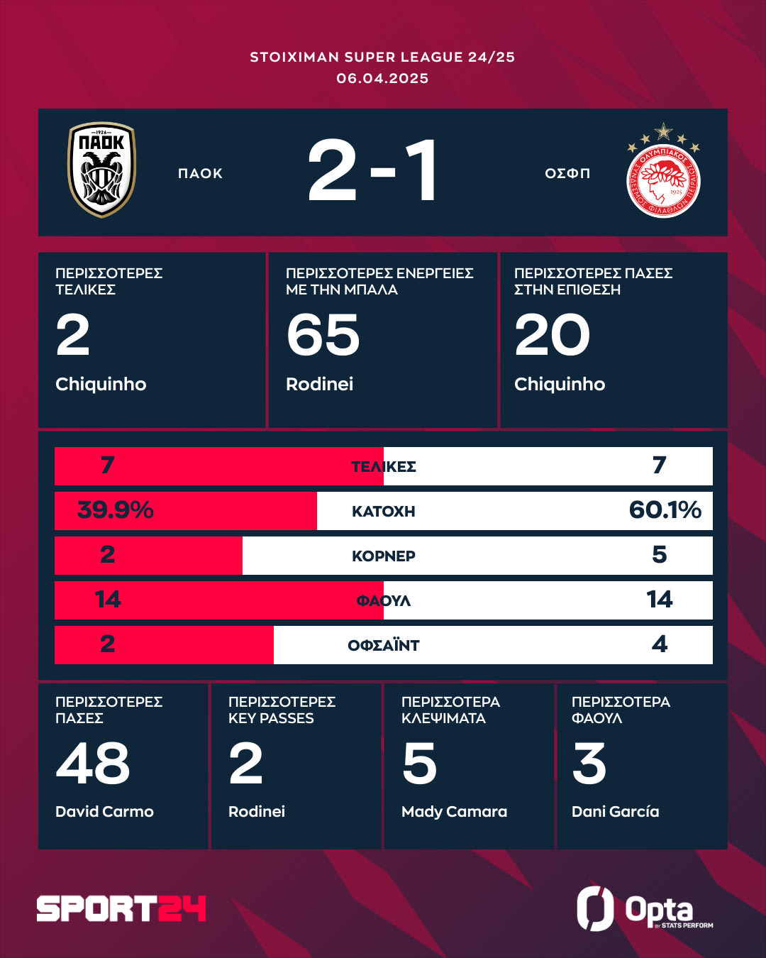 Ο ΠΑΟΚ, πλέον, βρίσκεται στην τρίτη θέση της βαθμολογίας και περιμένει να μάθει τι θα γίνει στο Παναθηναϊκός – ΑΕΚ. Οι Θεσσαλονικείς, βέβαια, είναι κερδισμένοι όπως και να ‘χει, έχοντας κοντινή απόσταση από τις δύο αθηναϊκές ομάδες. Όσο για τον Ολυμπιακό, ο σύλλογος του Πειραιά θα προσπαθήσει να σφραγίσει μαθηματικά την κατάκτηση της Stoiximan Super League κόντρα στην Ένωση, την επόμενη Κυριακή (13/4).