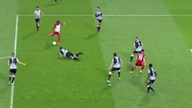 Ο Σβαμπ δεν κατάφερε να απομακρύνει την μπάλα εντός περιοχής και ο Πορτογάλος μεσοεπιθετικός πήρε την μπάλα και δοκίμασε το σουτ, στέλνοντάς την στο οριζόντιο δοκάρι του Πασχάλακη και στη συνέχεια κατέληξε άουτ.