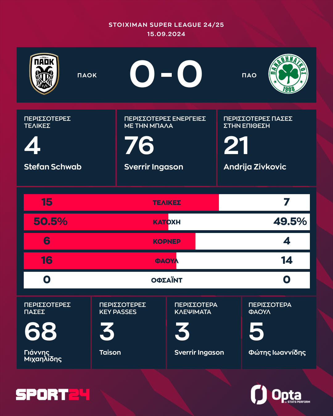 Το πρώτο ντέρμπι της χρονιάς δεν είχε ούτε νικητή ούτε και γκολ. ΠΑΟΚ και Παναθηναϊκός έδωσαν μια σκληρή μάχη στην Τούμπα, κανείς τους όμως δεν βγήκε νικητής με τις δύο ομάδες να παίρνουν τον βαθμό της ισοπαλίας.