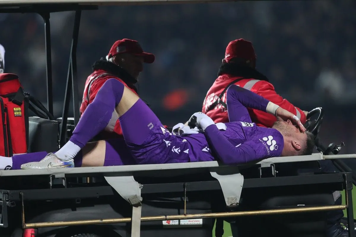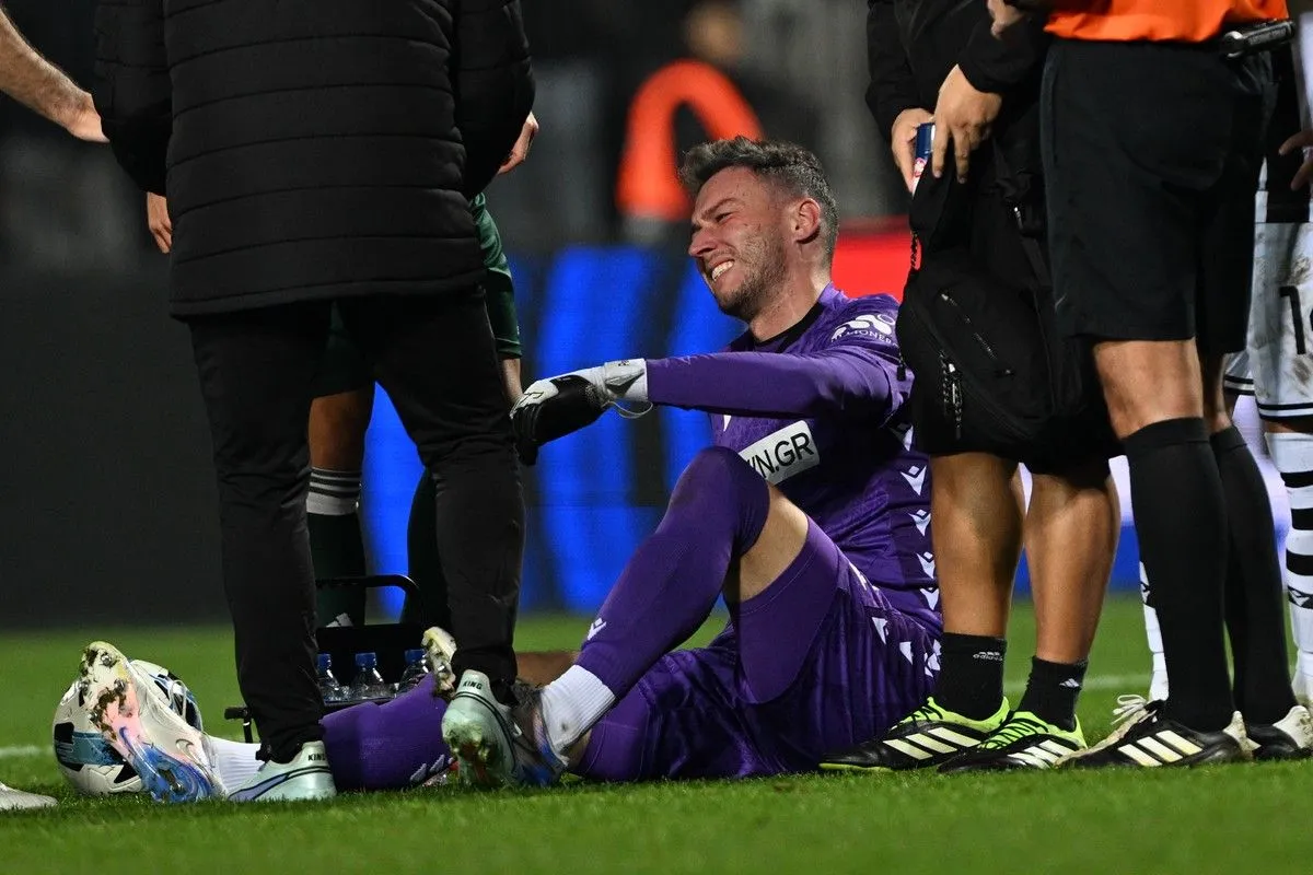 Ο 33χρονος σφάδαζε από τον πόνο και έφυγε από τον αγωνιστικό χώρο με φορείο. Τη θέση του κάτω από τα δοκάρια του Δικέφαλου πήρε ο Αντώνης Τσιφτσής.