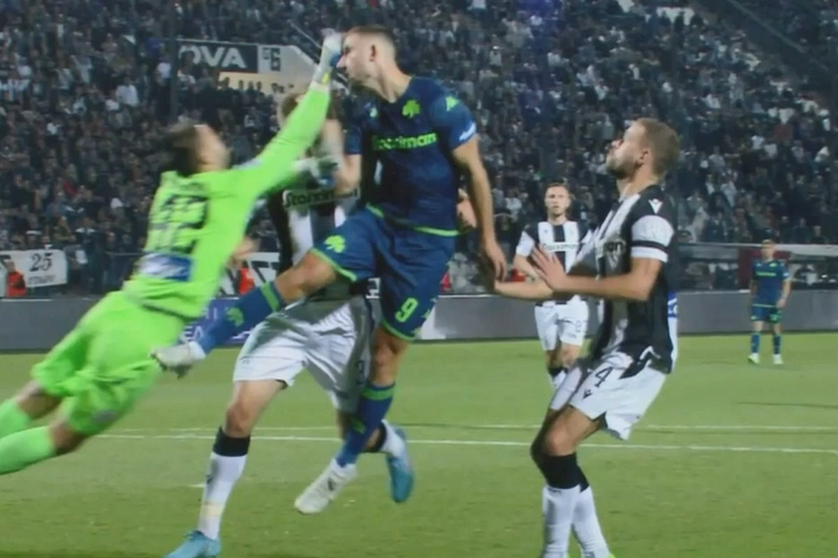 ΠΑΟΚ – Παναθηναϊκός: Ο Κοτάρσκι προσπάθησε να διώξει την μπάλα με γροθιά αλλά χτύπησε τον Σπόραρ και ο Αϊτόρ έκανε το 2-1 με πέναλτι